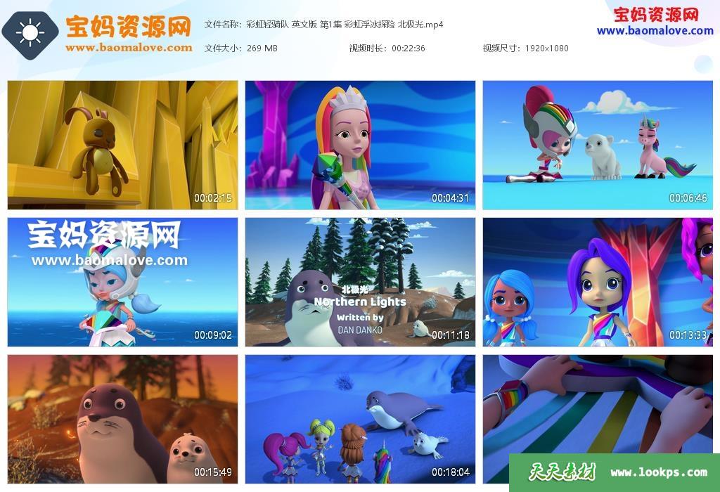 天天资源网收录的动画片《Rainbow Rangers》彩虹轻骑队英文版 第一季,全部26集,英语发音,中文字幕;每集大小约330M,总大小14.1G,单集播放时长约22分钟,1080P高清MP4格式,可以在电视机或电脑、平板、IPAD、早教机、手机等各种设备播放,提供百度云网盘下载。