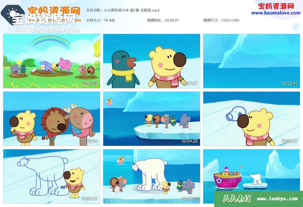 天天资源网收录的动画片《小小画家熊小米》,全部50集,国语发音,无字幕;每集大小约80M,总大小4.28G,单集播放时长约9分钟,1080P高清MP4格式,可以在电视机或电脑、平板、IPAD、早教机、手机等各种设备播放,提供百度云网盘下载。