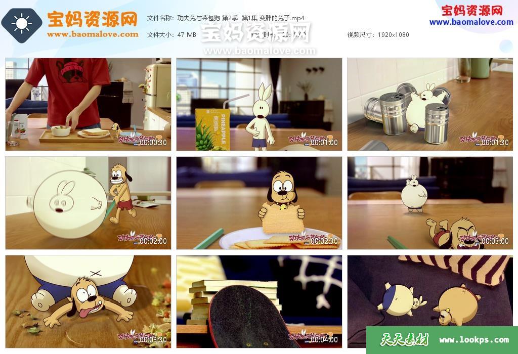 天天资源网收录的动画片《功夫兔与菜包狗》Kung Fu Bunny 第一二季,全部22集,无对白,默片动画;每集大小约70M,资源总大小1.51G,单集播放时长约5分钟,1080P高清MP4格式,可以在电视机或电脑、平板、IPAD、早教机、手机等各种设备播放,提供百度云网盘下载。