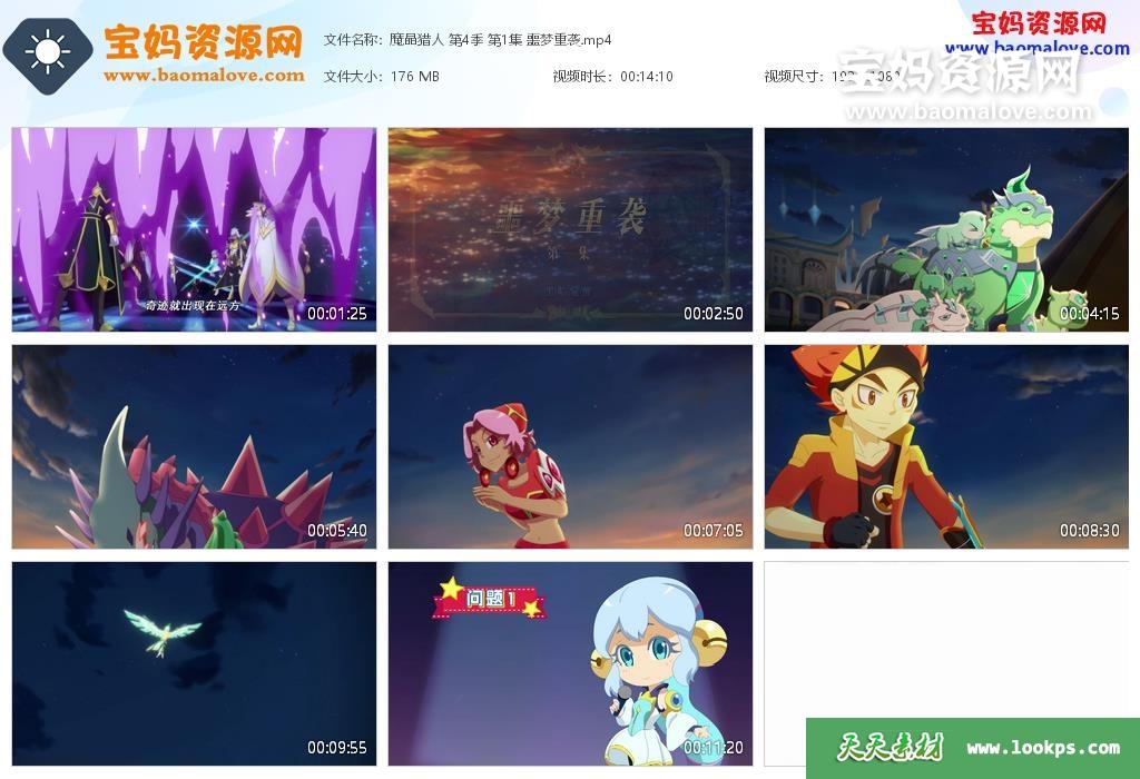 天天资源网收录的动画片《魔晶猎人》第四季,全部28集,国语发音,中文字幕;每集大小约160M,资源总大小4.5G,单集播放时长约13分钟,1080P高清MP4格式,可以在电视机或电脑、平板、IPAD、早教机、手机等各种设备播放,提供百度云网盘下载。