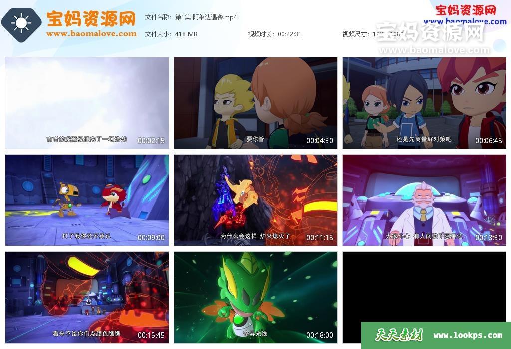 天天资源网收录的动画片《斗龙战士》第四季,全部30集,国语发音,中文字幕;每集大小约399M,资源总大小11.8G,单集播放时长约23分钟,1080P高清MP4格式,可以在电视机或电脑、平板、IPAD、早教机、手机等各种设备播放,提供百度云网盘下载。