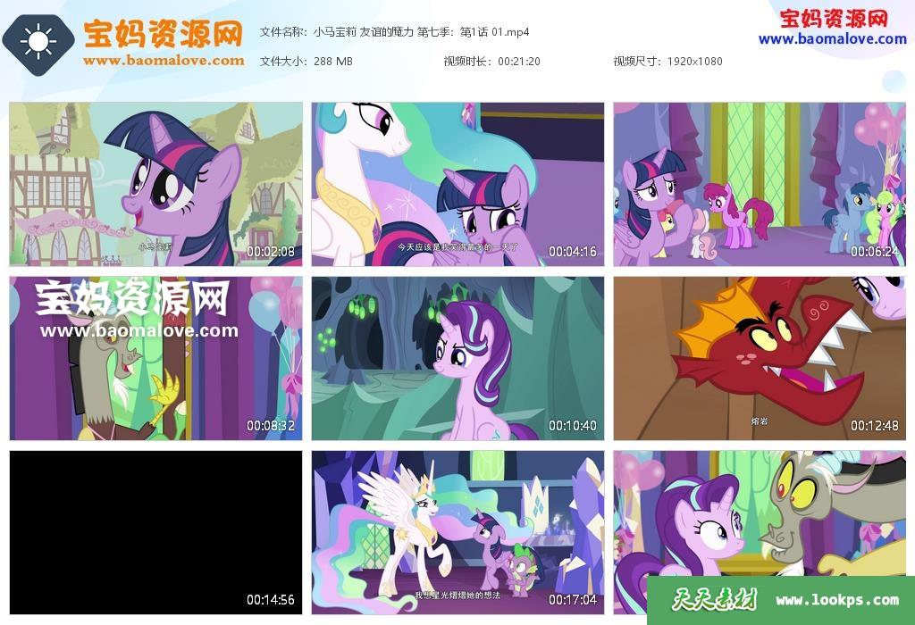 天天资源网收录的动画片《小马宝莉:友谊的魔力》My Little Pony: Friendship Is Magic中文版 第七季,全部26集,国语发音,中文字幕;每集大小约295M,资源总大小7.29G,单集播放时长约21分钟,1080P高清MP4格式,可以在电视机或电脑、平板、IPAD、早教机、手机等各种设备播放,提供百度云网盘下载。