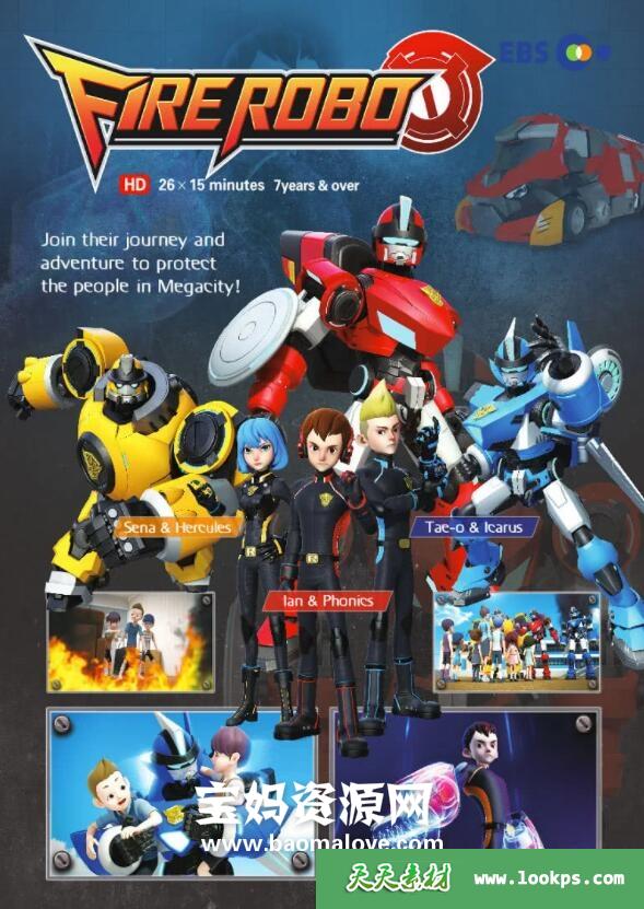 天天资源网收录的动画片《火线战警》FIRE ROBO中文版,全部26集,国语发音,中文字幕;每集大小约150M,资源总大小3.97G,单集播放时长约13分钟,1080P高清MP4格式,可以在电视机或电脑、平板、IPAD、早教机、手机等各种设备播放,提供百度云网盘下载。