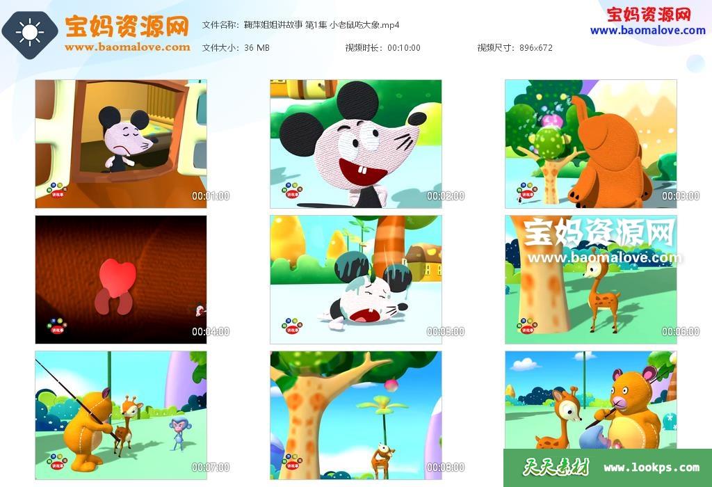天天资源网收录的动画片《鞠萍姐姐讲故事》,全部145集,国语发音,无字幕;每集大小约46M,总大小6.67G,单集播放时长约10分钟,504P标清MP4格式,可以在电视机或电脑、平板、IPAD、早教机、手机等各种设备播放,提供百度云网盘下载。