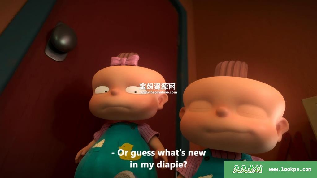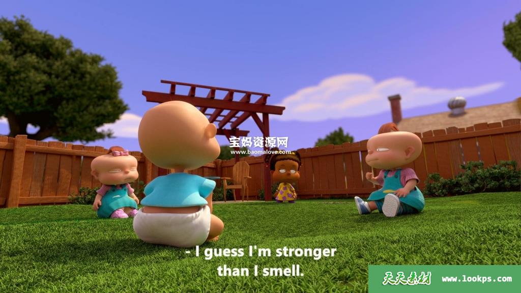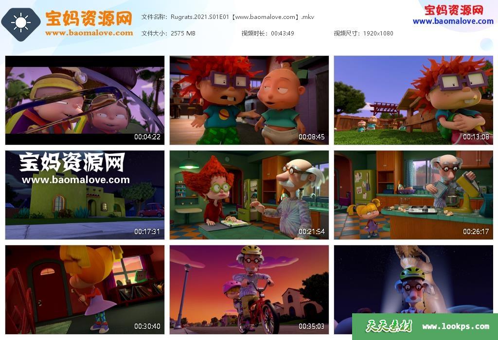 天天资源网收录的动画片《Rugrats》淘气小兵兵英文版 第一季,全部5集,英语发音,(可以下载后使用播放器设置字幕字体大小颜色或者切换关闭字幕);每集大小1350M,总大小8.03G,单集播放时长约22分钟,1080P高清MKV格式,可以在电视机或电脑、平板、IPAD、早教机、手机等各种设备播放,提供百度云网盘下载。