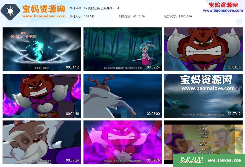 天天资源网收录的动画片《虹猫蓝兔七侠外传》,全部52集,国语发音,中文字幕;每集大小约105M,资源总大小5.54G,单集播放时长约12分钟,720P高清MP4格式,可以在电视机或电脑、平板、IPAD、早教机、手机等各种设备播放,提供百度云网盘下载。