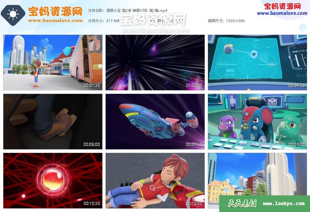 天天资源网收录的动画片《星原小宝 第二季 神勇V5队》,全部60集,国语发音,中文字幕;每集大小约200M,资源总大小12.2G,单集播放时长约15分钟,1080P高清MP4格式,可以在电视机或电脑、平板、IPAD、早教机、手机等各种设备播放,提供百度云网盘下载。