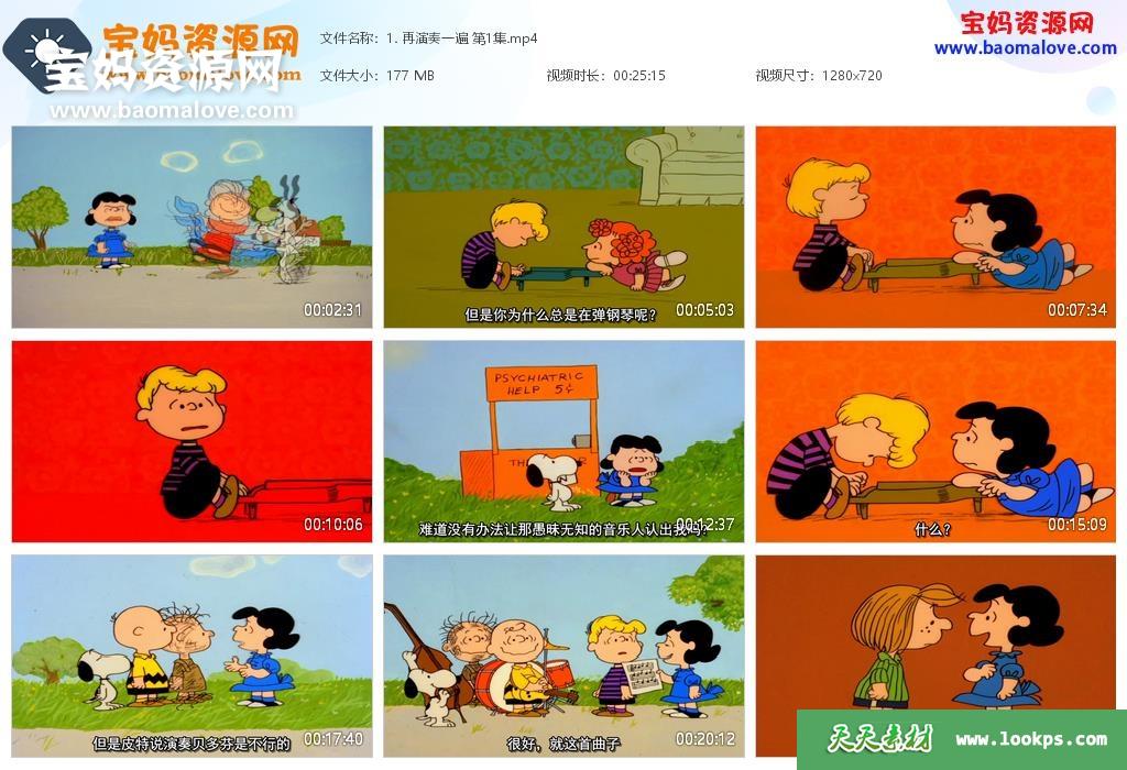 天天资源网收录的动画片《Charlie Brown》查理布朗英文版,全部19集,英语发音,中文字幕;每集大小约430M,资源总大小10.3G,单集播放时长约25分钟,1080P高清MP4格式,可以在电视机或电脑、平板、IPAD、早教机、手机等各种设备播放,提供百度云网盘下载。