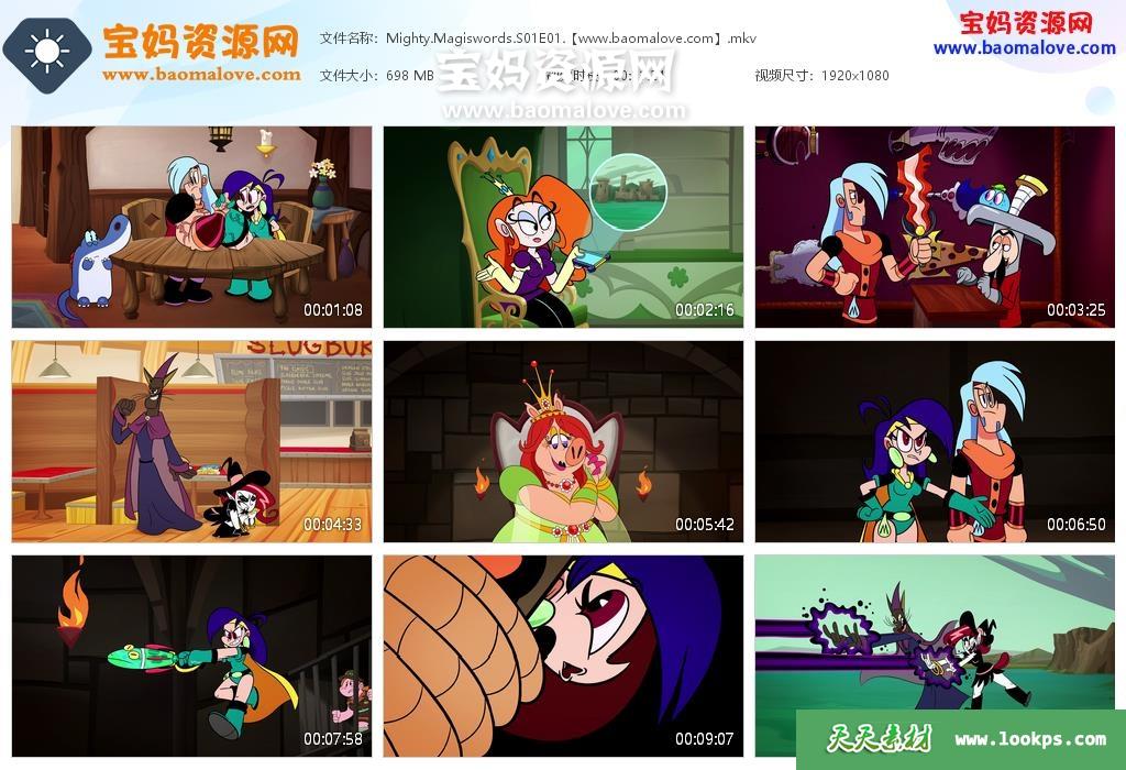 天天资源网收录的动画片《Mighty Magiswords》超级神剑英文版 第一季,全部52集,英语发音,内置英文字幕(可以下载后使用播放器选择设置字幕或者关闭字幕);每集大小700M,资源总大小35.5G,单集播放时长约11分钟,1080P高清MKV格式,可以在电视机或电脑、平板、IPAD、早教机、手机等各种设备播放,提供百度云网盘下载。