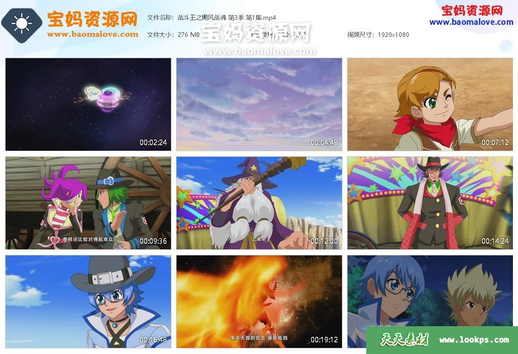 天天资源网收录的动画片《战斗王之飓风战魂》第三季,全部40集,国语发音,中文字幕;每集大小约260M,资源总大小11.2G,单集播放时长约24分钟,1080P高清MP4格式,可以在电视机或电脑、平板、IPAD、早教机、手机等各种设备播放,提供百度云网盘下载。