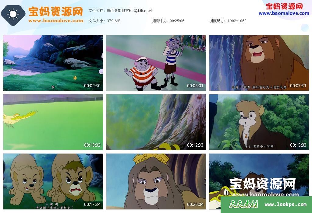 天天资源网收录的动画片《Simba Jr. re del football》少年辛巴去纽约参加世界杯英文版,全部26集,英语发音,中文字幕;每集大小约399M,资源总大小10.7G,单集播放时长约25分钟,1080P高清MP4格式,可以在电视机或电脑、平板、IPAD、早教机、手机等各种设备播放,提供百度云网盘下载。