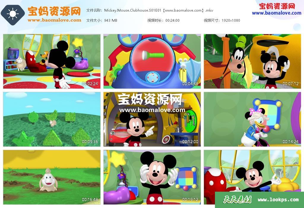 天天资源网收录的动画片《Mickey Mouse Clubhouse》米奇妙妙屋英文版 第一季,全部26集,英语发音,内置英文字幕(可以下载后使用播放器选择设置字幕或者关闭字幕);每集大小950M,资源总大小36.5G,单集播放时长约24分钟,1080P高清MKV格式,可以在电视机或电脑、平板、IPAD、早教机、手机等各种设备播放,提供百度云网盘下载。