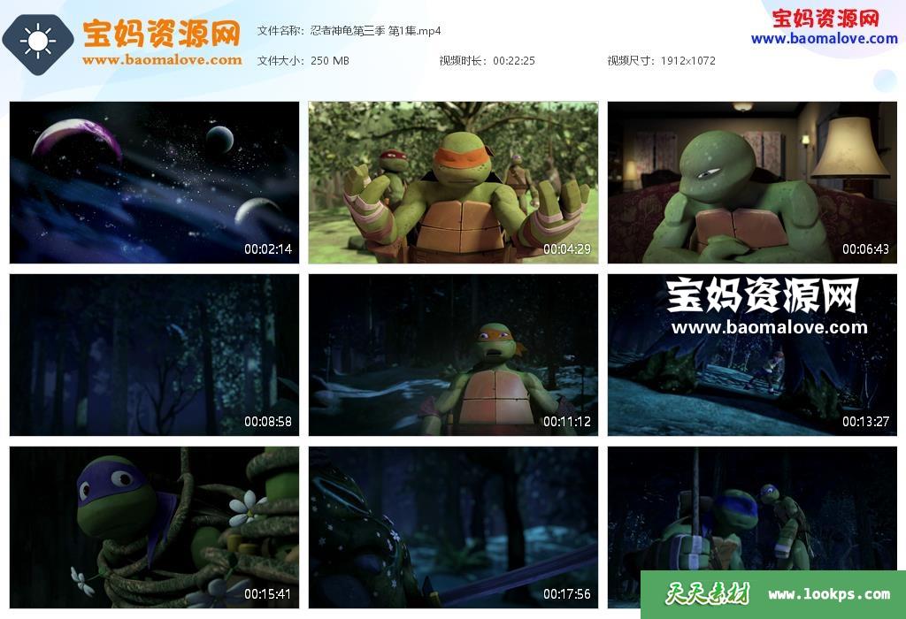 天天资源网收录的动画片《忍者龟》Teenage Mutant Ninja Turtles中文版 第三季,全部26集,国语发音,无字幕;每集大小约260M,资源总大小6.71G,单集播放时长约22分钟,1080P高清MP4格式,可以在电视机或电脑、平板、IPAD、早教机、手机等各种设备播放,提供百度云网盘下载。