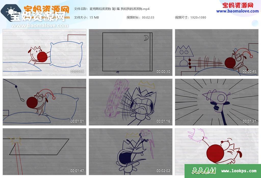 天天资源网收录的动画片《麦克斯和波波狗》,全部96集,无对白,默片动画;每集大小约15M,资源总大小1.68G,单集播放时长约2分钟,1080P高清MP4格式,可以在电视机或电脑、平板、IPAD、早教机、手机等各种设备播放,提供百度云网盘下载。