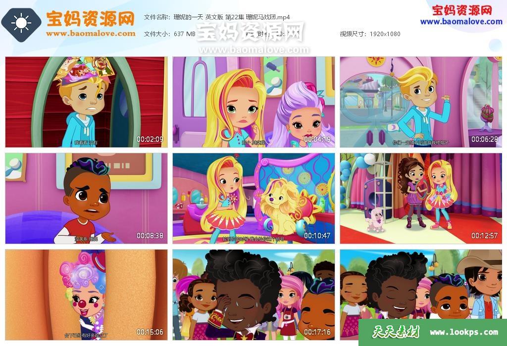 天天资源网收录的动画片《Sunny Day》珊妮的一天英文版,全部40集,英语发音,中文字幕;每集大小约230M,资源总大小16.8G,单集播放时长约21分钟,1080P高清MP4格式,可以在电视机或电脑、平板、IPAD、早教机、手机等各种设备播放,提供百度云网盘下载。