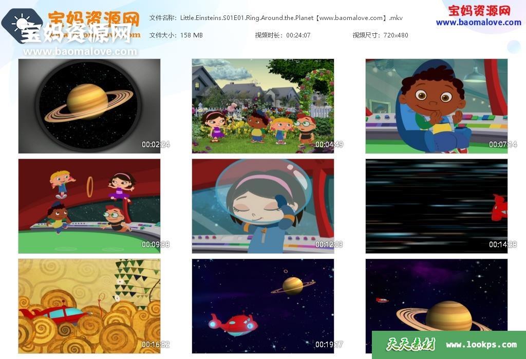 天天资源网收录的动画片《Little Einsteins》小爱因斯坦英文版 第一季,全部28集,英语发音,内置英文字幕(可以下载后使用播放器选择设置字幕或者关闭字幕);每集大小150M,资源总大小4.51G,单集播放时长约24分钟,480P标清MKV格式,可以在电视机或电脑、平板、IPAD、早教机、手机等各种设备播放,提供百度云网盘下载。