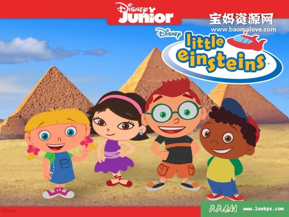 “小爱因斯坦 Little Einsteins”在2005年8月首先推出了一部电影《Our Huge Adventure》,此后从2005年10月开始在Disney Junior频道陆续播出电视动画,到2009年12月共播出2季67集。每集22分钟左右适合3岁以上学龄前儿童观看。