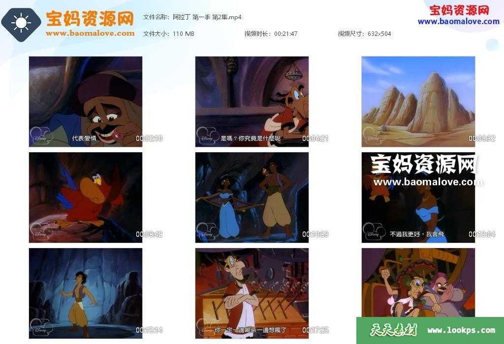 天天资源网收录的动画片《阿拉丁》Aladdin中文版 第一季,全部78集,国语发音,中文字幕;每集大小约110M,资源总大小10.5G,单集播放时长约21分钟,480P标清MP4格式,可以在电视机或电脑、平板、IPAD、手机等各种设备播放,提供百度云网盘下载!