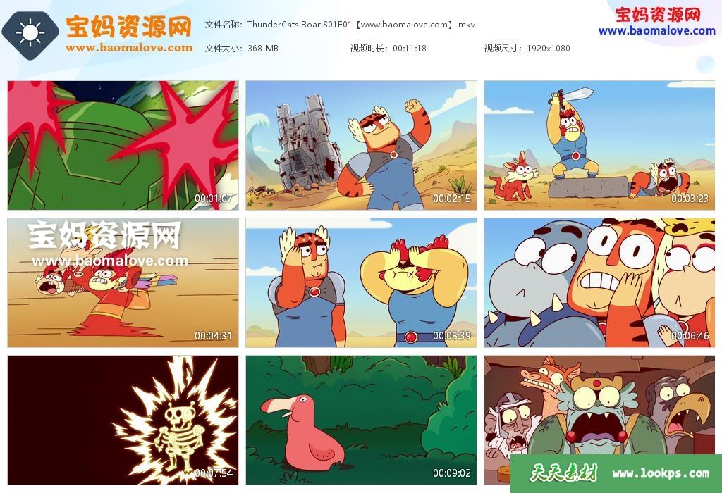 天天资源网收录的动画片《ThunderCats Roar》霹雳猫之咆哮英文版 第一季,全部52集,英语发音,内置英文字幕(可以下载后使用播放器选择设置字幕或者关闭字幕);每集大小430M,资源总大小27.1G,单集播放时长约11分钟,1080P高清MKV格式,可以在电视机或电脑、平板、IPAD、早教机、手机等各种设备播放,提供百度云网盘下载。