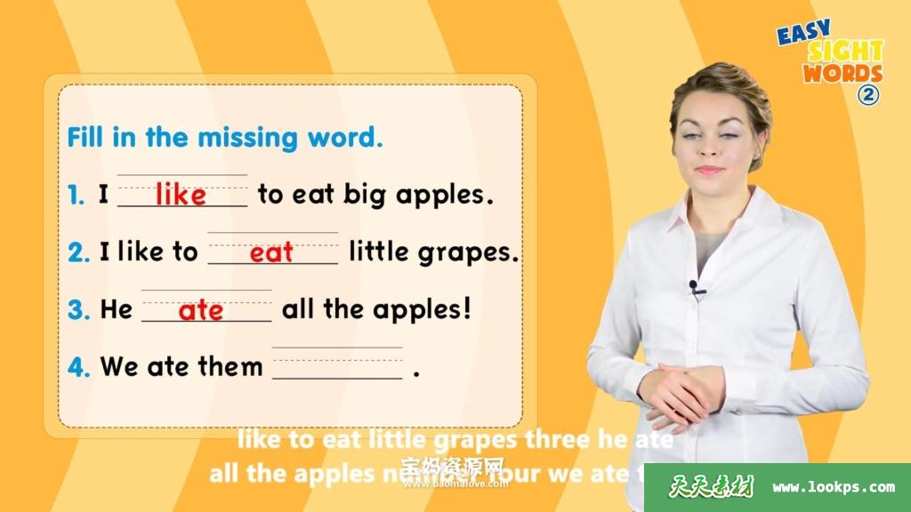 (Unit 2 I Like To Eat) _ Sight Words – like, eat, ate, all