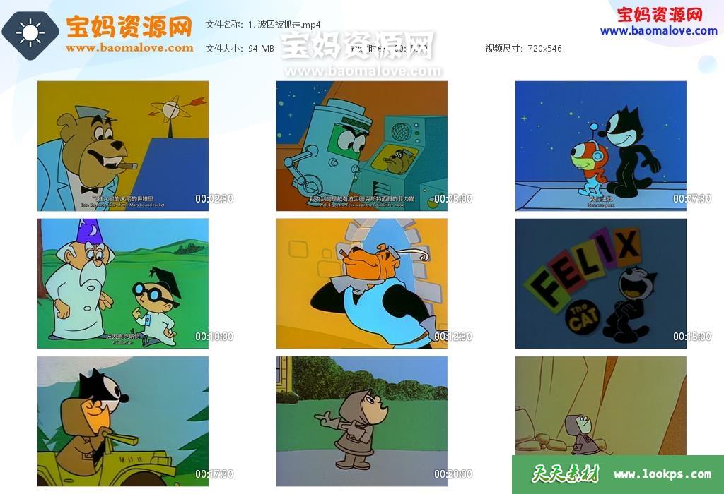 天天资源网收录的动画片《Felix the Cat》菲利克斯猫英文版,全部26集,英语发音,中英文字幕;每集大小约85M,资源总大小2.15G,单集播放时长约25分钟,540P高清MP4格式,可以在电视机或电脑、平板、IPAD、早教机、手机等各种设备播放,提供百度云网盘下载。