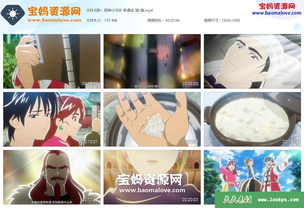 天天资源网收录的动画片《厨神小当家》第一季,全部12集,国语发音,中文字幕;每集大小约150M,资源总大小1.76G,单集播放时长约25分钟,1080P高清MP4格式,可以在电视机或电脑、平板、IPAD、早教机、手机等各种设备播放,提供百度云网盘下载。