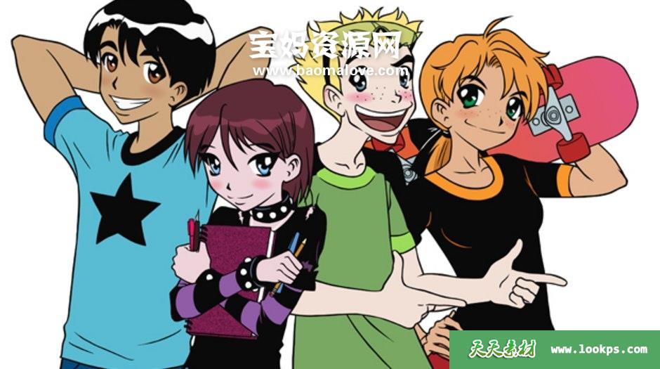 青春四人组,为JC Little、Cindy Filipenco和Svetlana Chmakova所制作的加拿大电视动画。分别在加拿大由TELETOON、法国由France 2和J频道以及在亚洲由迪士尼频道播出。内容是以一位爱好漫画的女孩碧琪为主角,和别人在高中互动的短篇卡通故事集。画面融合日本卡通的风格。