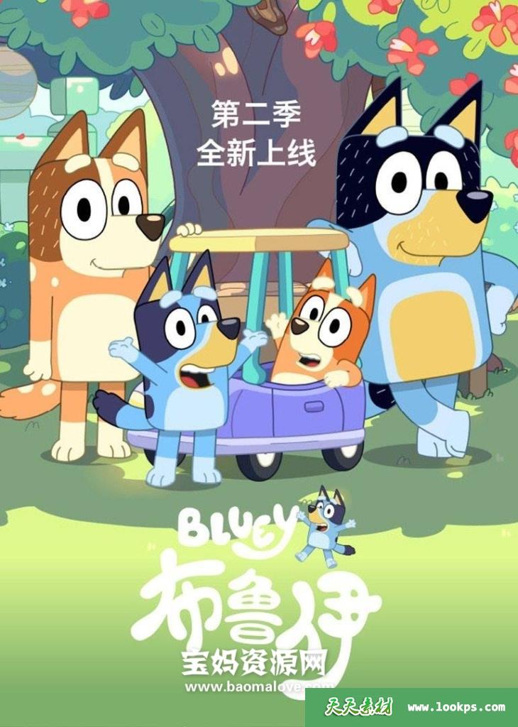 天天资源网收录的动画片《Bluey》布鲁伊英文版 第二季,全部52集,英语发音,内置中文字幕;每集大小约80M,资源总大小5.1G,单集播放时长约7分钟,1080P高清MP4格式,可以在电视机或电脑、平板、IPAD、早教机、手机等各种设备播放,提供百度云网盘下载。