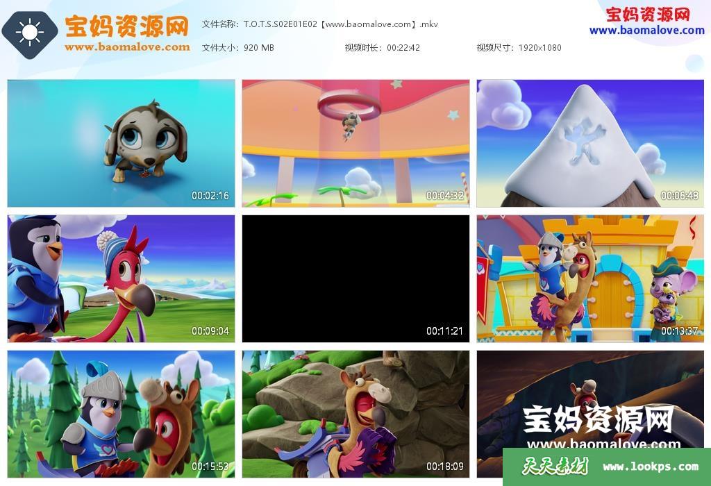 天天资源网收录的动画片《T.O.T.S. 》宝宝快递英文版 第二季,全部50集,英语发音,内置英文字幕(可以下载后使用播放器选择设置字幕或者关闭字幕);每集大小460M,资源总大小22.7G,单集播放时长约11分钟,1080P高清MKV格式,可以在电视机或电脑、平板、IPAD、早教机、手机等各种设备播放,提供百度云网盘下载。