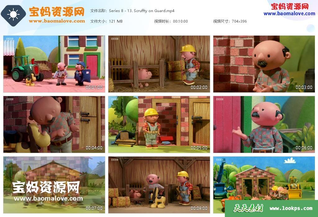 天天资源网收录的动画片《Bob the Builder》巴布工程师英文版 第八季,全部13集,英语发音,外挂英文字幕;每集大小约120M,资源总大小1.54G,单集播放时长约10分钟,396P标清MP4格式,可以在电视机或电脑、平板、IPAD、早教机、手机等各种设备播放,提供百度云网盘下载。