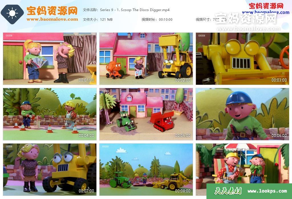 天天资源网收录的动画片《Bob the Builder》巴布工程师英文版 第九季,全部13集,英语发音,外挂英文字幕;每集大小约120M,资源总大小1.54G,单集播放时长约10分钟,396P标清MP4格式,可以在电视机或电脑、平板、IPAD、早教机、手机等各种设备播放,提供百度云网盘下载。