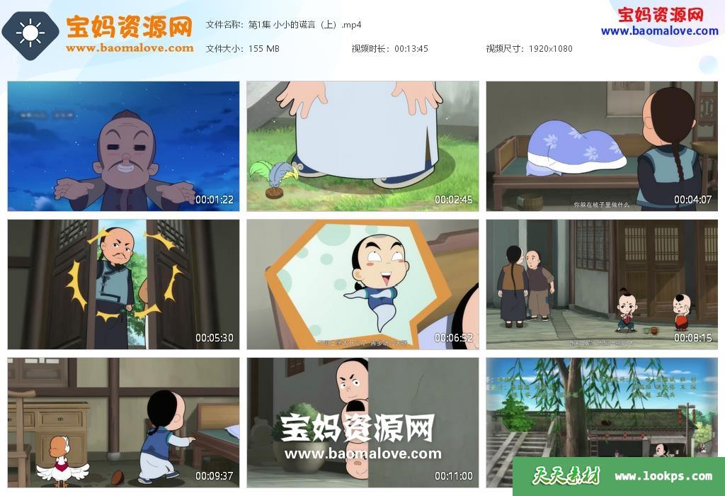 天天资源网收录的动画片《少年师爷》第五季,全部26集,国语发音,中文字幕;每集大小约150M,资源总大小4.41G,单集播放时长约15分钟,1080P高清MP4格式,可以在电视机或电脑、平板、IPAD、早教机、手机等各种设备播放,提供百度云网盘下载。