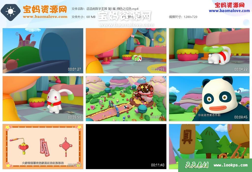天天资源网收录的动画片《逗逗虎数学王国》,全部52集,国语发音,中文字幕;每集大小约75M,资源总大小4.26G,单集播放时长约14分钟,720P高清MP4格式,可以在电视机或电脑、平板、IPAD、早教机、手机等各种设备播放,提供百度云网盘下载。