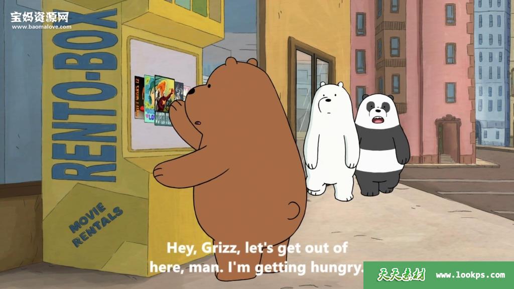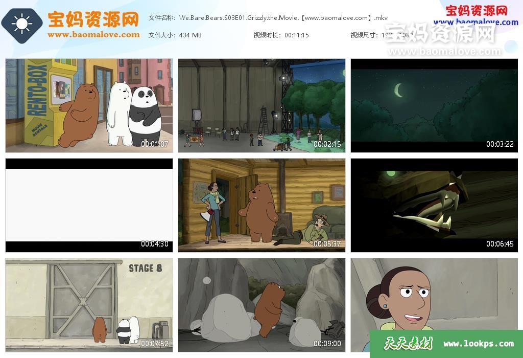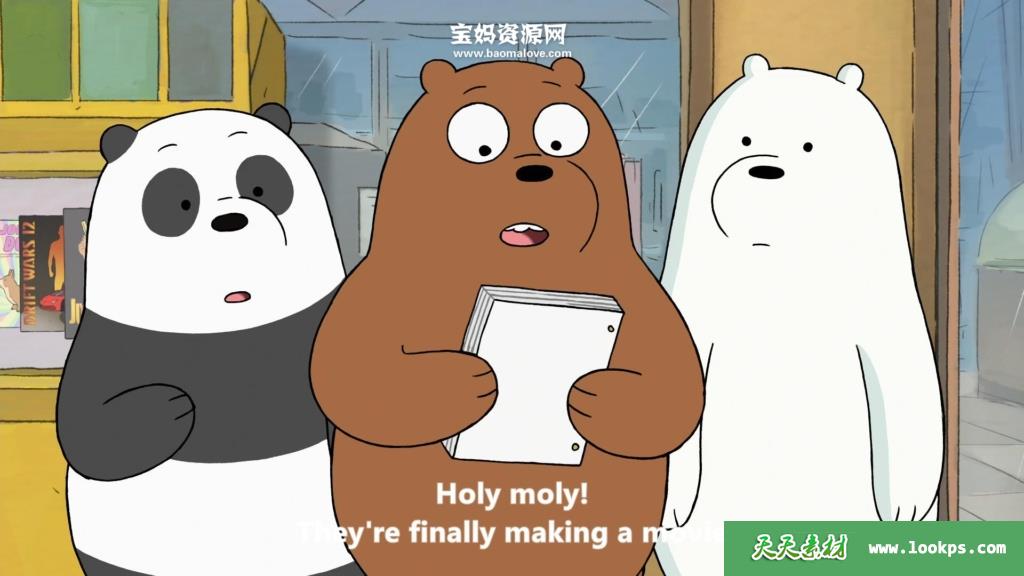 天天资源网收录的动画片《We Bare Bears》咱们裸熊英文版 第三季,全部43集,英语发音,内置英文字幕(可以下载后使用播放器选择设置字幕或者关闭字幕);每集大小390M,资源总大小17.9G,单集播放时长约11分钟,1080P高清MKV格式,可以在电视机或电脑、平板、IPAD、早教机、手机等各种设备播放,提供百度云网盘下载。
