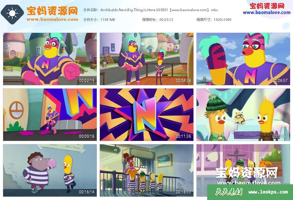 天天资源网收录的动画片《Archibald’s Next Big Thing Is Here!》阿鸡冒险日记在这里英文版 第三季,全部6集,英语发音,内置英文字幕(可以下载后使用播放器选择设置字幕或者关闭字幕);每集大小1100M,资源总大小6.65G,单集播放时长约23分钟,1080P高清MKV格式,可以在电视机或电脑、平板、IPAD、早教机、手机等各种设备播放,提供百度云网盘下载。