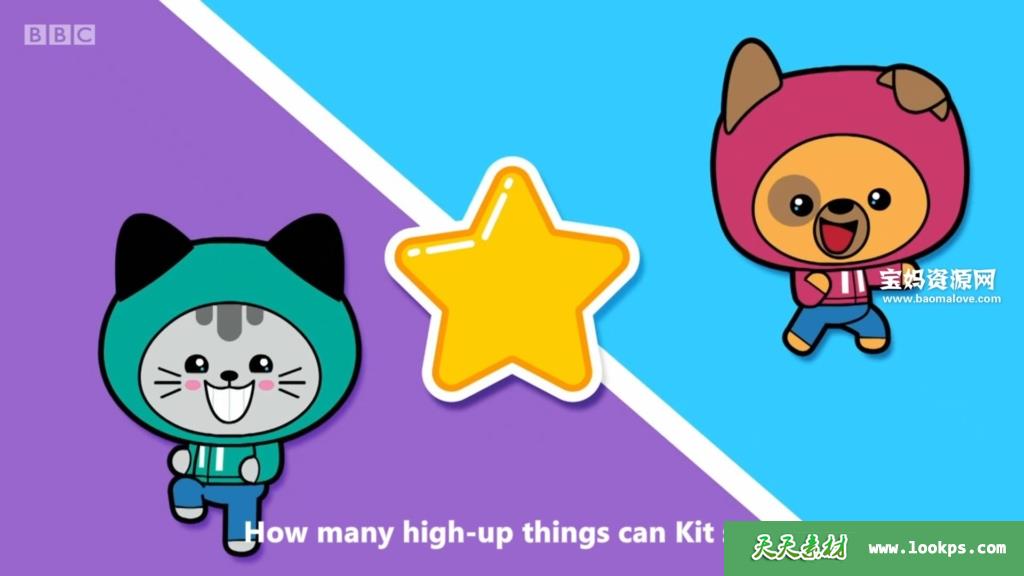 BBC动画片《吉吉猫和皮皮狗Kit and Pup》第一季英文版,主要针对学龄前儿童的科普节目。它把动画和现场表演融为一体,告诉孩子高低、远近、长短、固体和液体等反义词。主角是小猫Kit和小狗Pup。动画节奏饱满,有趣活泼。通过各种反义词的视觉效果,让孩子学会认知反义词。动画结合现实生活,孩子更容易理解~ ~