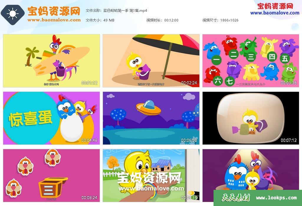 天天资源网收录的动画片《蓝色咕咕》Lottie Dottie Mini中文版 第一季,全部26集,国语发音,中文字幕;每集大小约55M,资源总大小1.61G,单集播放时长约12分钟,1080P高清MP4格式,可以在电视机或电脑、平板、IPAD、早教机、手机等各种设备播放,提供百度云网盘下载。