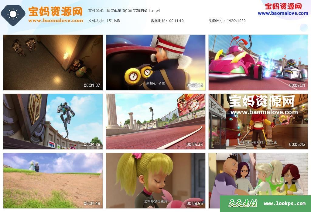 天天资源网收录的动画片《精灵战车》,全部52集,国语发音,中文字幕;每集大小约135M,总大小7.55G,单集播放时长约11分钟,1080P高清MP4格式,可以在电视机或电脑、平板、IPAD、早教机、手机等各种设备播放,提供百度云网盘下载。