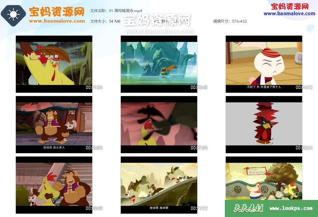 天天资源网收录的动画片《小鸡不好惹之咸蛋寺》,全部78集,国语发音,中文字幕;每集大小约45M,总大小3.68G,单集播放时长约14分钟,432P标清MP4格式,可以在电视机或电脑、平板、IPAD、早教机、手机等各种设备播放,提供百度云网盘下载。