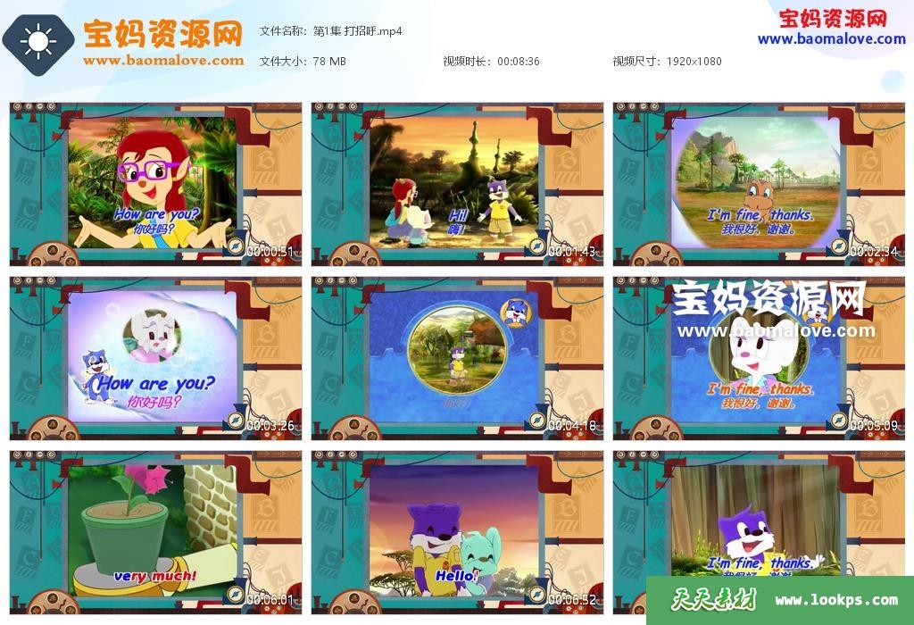 天天资源网收录的动画片《蓝猫启蒙英语100句》,全部50集,英语发音,中英文字幕;每集大小约65M,资源总大小3.96G,单集播放时长约8分钟,1080P高清MP4格式,可以在电视机或电脑、平板、IPAD、早教机、手机等各种设备播放,提供百度云网盘下载。
