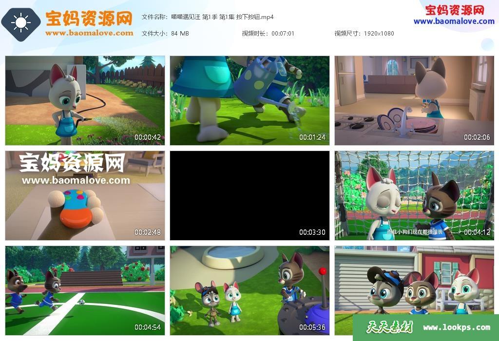 天天资源网收录的动画片《喵喵遇见汪》第一季,全部26集,国语发音,中文字幕;每集大小约80M,资源总大小2.16G,单集播放时长约7分钟,1080P高清MP4格式,可以在电视机或电脑、平板、IPAD、早教机、手机等各种设备播放,提供百度云网盘下载。