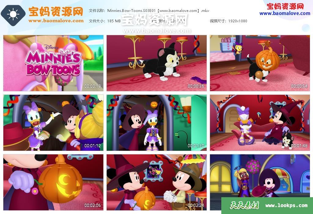 天天资源网收录的动画片《Minnie’s Bow-Toons》美妮的蝴蝶结卡通英文版 第三季,全部10集,英语发音,内置英文字幕(可以下载后使用播放器选择设置字幕或者关闭字幕);每集大小180M,资源总大小1.8G,单集播放时长约3分钟,1080P高清MKV格式,可以在电视机或电脑、平板、IPAD、早教机、手机等各种设备播放,提供百度云网盘下载。