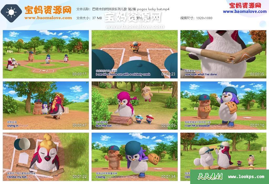 天天资源网收录的动画片《巴塔木自然拼读系列儿歌》,全部24集,英语发音,中英文字幕;每集大小约55M,资源总大小1.64G,单集播放时长约3分钟,1080P高清MP4格式,可以在电视机或电脑、平板、IPAD、早教机、手机等各种设备播放,提供百度云网盘下载。