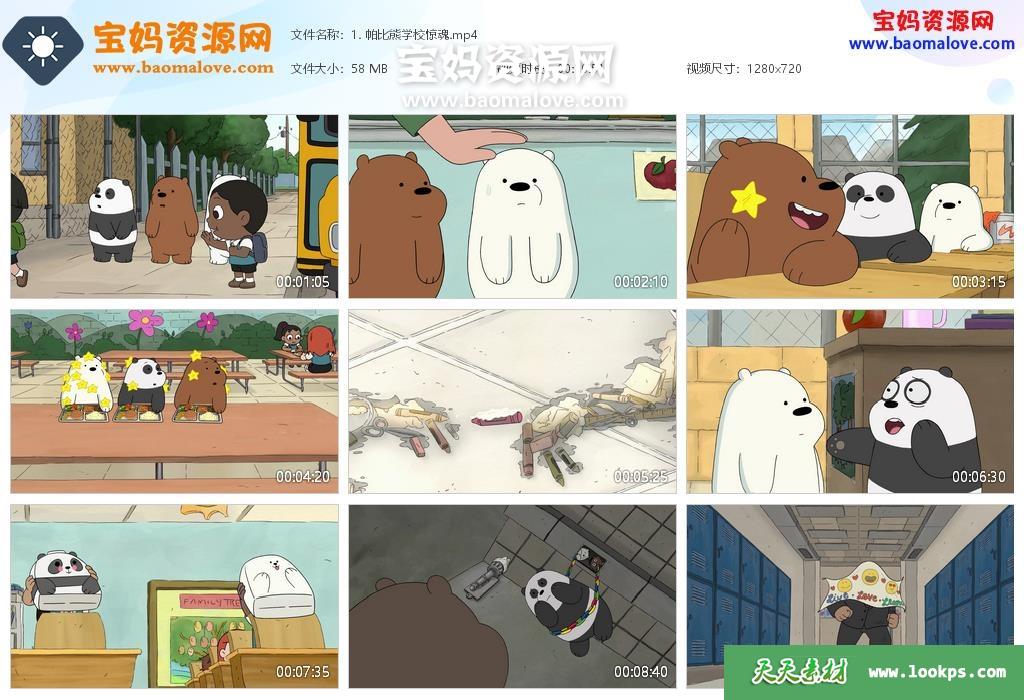 天天资源网收录的动画片《咱们裸熊》We Bare Bears中文版 第四季,全部34集,国语发音,无字幕;每集大小约50M,资源总大小1.83G,单集播放时长约11分钟,720P高清MP4格式,可以在电视机或电脑、平板、IPAD、早教机、手机等各种设备播放,提供百度云网盘下载。