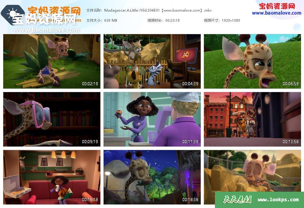 天天资源网收录的动画片《Madagascar: A Little Wild》马达加斯加:小小狂野英文版 第四季,全部6集,英语发音,内置英文字幕(可以下载后使用播放器选择设置字幕或者关闭字幕);每集大小630M,资源总大小3.97G,单集播放时长约23分钟,1080P高清MKV格式,可以在电视机或电脑、平板、IPAD、早教机、手机等各种设备播放,提供百度云网盘下载。