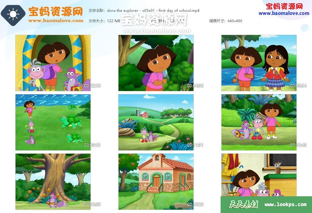 天天资源网收录的动画片《Dora the Explorer》爱探险的朵拉英文版 第五季,全部20集,英语发音,无字幕;每集大小约135M,资源总大小3.56G,单集播放时长约23分钟,480P标清MP4格式,可以在电视机或电脑、平板、IPAD、早教机、手机等各种设备播放,提供百度云网盘下载。