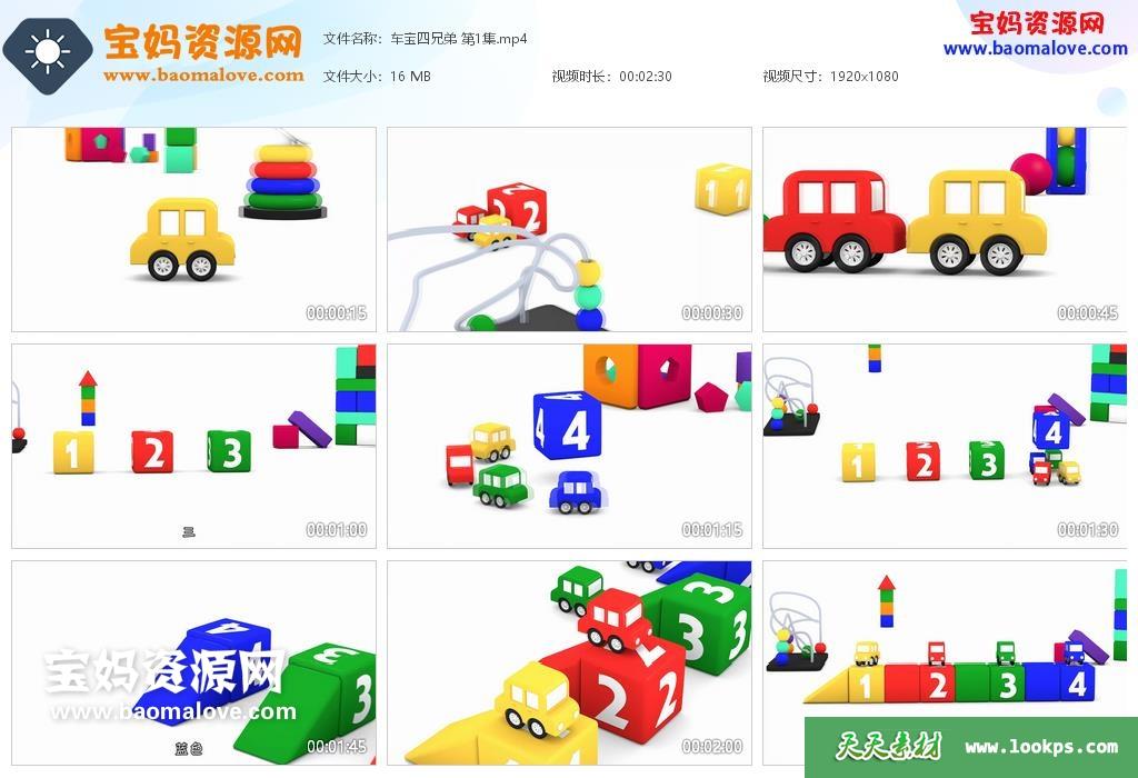天天资源网收录的动画片《车宝四兄弟》第一季 ,全部106集,国语发音,中文字幕;每集大小约18M,资源总大小5.9G,单集播放时长约2~3分钟,1080P高清MP4格式,可以在电视机或电脑、平板、IPAD、早教机、手机等各种设备播放,提供百度云网盘下载。