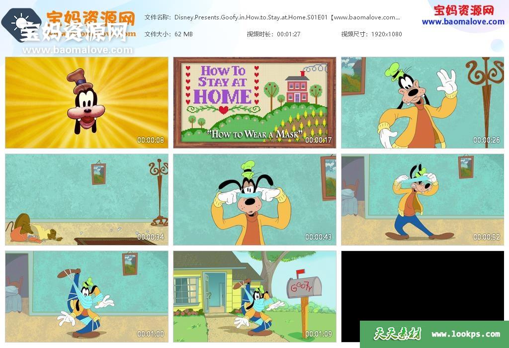 天天资源网收录的动画片《Disney Presents Goofy in How to Stay at Home》高飞宅家指南英文版 第一季,全部3集,英语发音,内置英文字幕(内置多国语言字幕如中文,丹麦文,德文,西班牙文,芬兰文,法文,意大利文,韩文,日文,中文,丹麦文,德文,西班牙文,芬兰文,法文,意大利文,韩文,日文等,可以下载后使用播放器选择设置字幕或者关闭字幕);每集大小60M,资源总大小443M,单集播放时长约1分钟,1080P高清MKV格式,可以在电视机或电脑、平板、IPAD、早教机、手机等各种设备播放,提供百度云网盘下载。