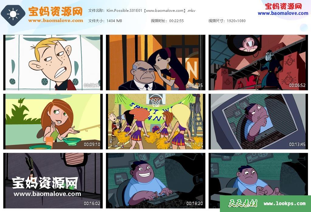 天天资源网收录的动画片《Kim possible》麻辣女孩英文版 第一季,全部21集,英语发音,内置英文字幕(可以下载后使用播放器选择设置字幕或者关闭字幕);每集大小1370M,资源总大小28.9G,单集播放时长约23分钟,1080P高清MKV格式,可以在电视机或电脑、平板、IPAD、早教机、手机等各种设备播放,提供百度云网盘下载。
