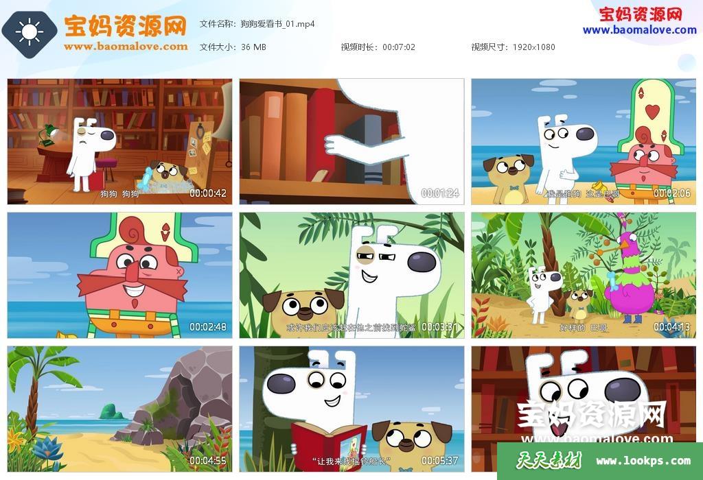天天资源网收录的动画片《狗狗爱读书》Dog Loves Books中文版,全部52集,国语发音,中文字幕;每集大小约30M,资源总大小1.67G,单集播放时长约7分钟,1080P高清MP4格式,可以在电视机或电脑、平板、IPAD、早教机、手机等各种设备播放,提供百度云网盘下载。